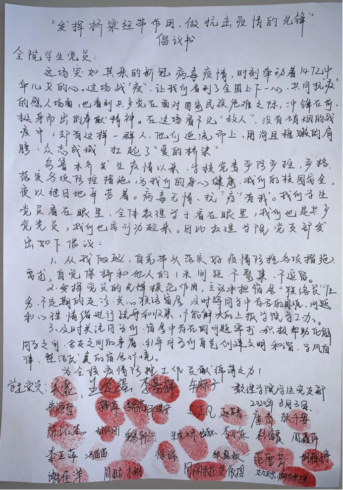 “发挥桥梁纽带作用,做抗击疫情的先锋” 倡议书