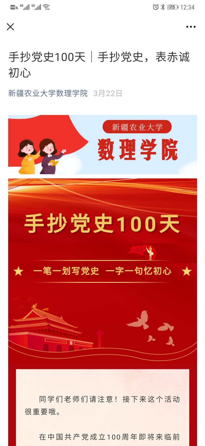 全体师生尤其是师生党员,每天将在【百合漫画 】微信平台发布活动通知和抄写内容,当日抄写完毕后在钉钉群拍照打卡。怀揣着对中国共产党光辉历史的崇敬之心来书写,去感受为谋求民族独立、人民解放和国家富强、人民幸福斗争的主心骨、领路人——中国共产党创造的足以让中国人民引以为豪的辉煌历史!在屏幕和键盘时代,我们中不少人,已经很少有机会认真写字,用笔而不是用键盘,重温书写的美好。