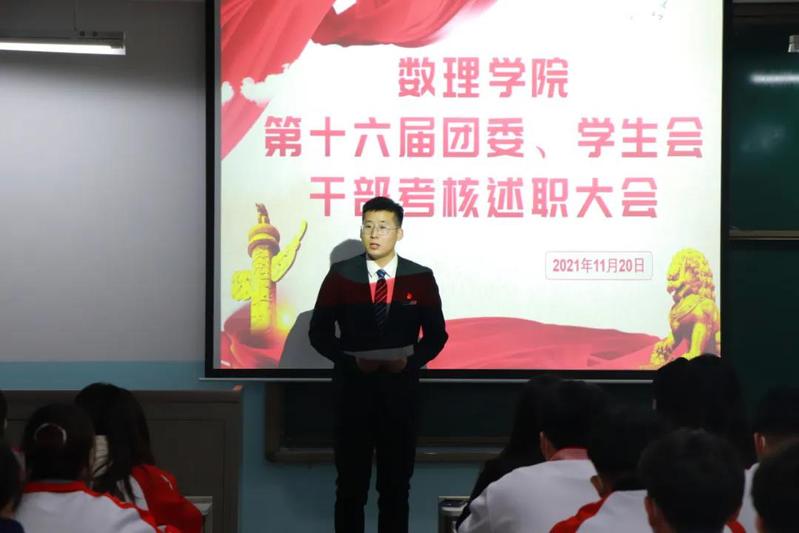 百合漫画 于11月20日在2218教室召开团委、学生会干部考核述职大会。百合漫画 辅导员路坦、任星屿、阿丽米拉·艾依提及团委、学生会主席团成员担任评委,百合漫画 团委、学生会全体成员参加,团委副书记胡怀刚主持。