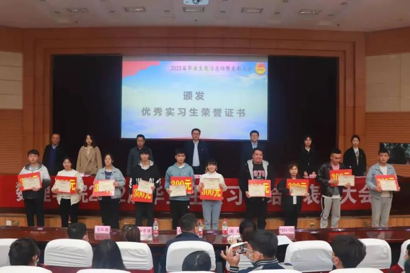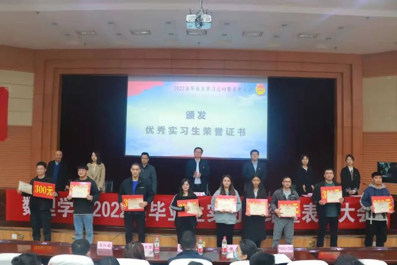 主席台就座领导及教师为优秀实习生颁发荣誉证书。