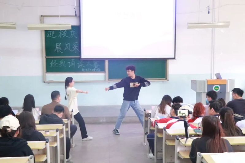 各比赛队伍诵读完毕后,在志愿者核分阶段,数学2103班迪丽努尔·阿卜力米提、麦尔旦·热西提带来民族舞《欢乐的清晨》,欢快的节拍、摇曳的舞姿点燃了现场的气氛,数学M182班董梦鸽演唱歌曲《单车》引发了全场阵阵掌声。