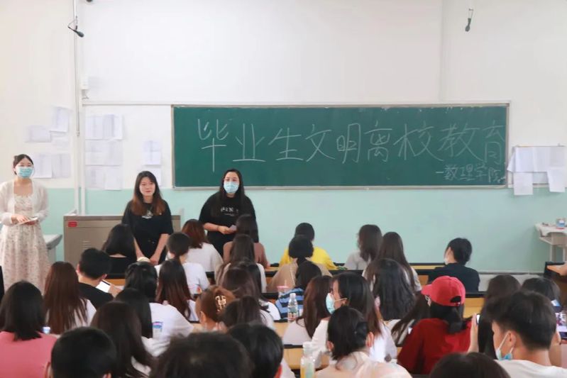 首先,阿丽米拉·艾依提老师围绕毕业生诚信感恩、行为规范、离校安全三个方面进行详细的讲解,使同学们更加明晰了离校的各项具体要求。同时,教育引导毕业生遵规守纪、严格自律、善始善终,做到文明离校、安全离校,并提醒同学们应时刻注意人身安全、财产安全、网络安全,增强自身防范意识。