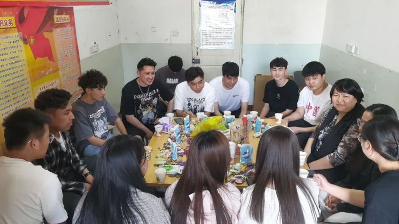 随后,节日茶话会在一片欢声笑语中拉开帷幕,不断有同学进行才艺表演,舒尔娜·吾其尔副书记与她的“三进两联一交友”学生也参与其中,齐跳舞蹈,一度将节日的氛围推向高潮。