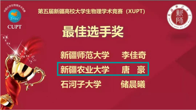 CUPT新疆区赛是为迎接CUPT西北区赛和全国赛,同时鼓励全疆高校本科学生培养物理学习能力、研究创新能力和团队协作精神,让新疆高校更多优秀大学生充分展示自我和交流学习的一个崭新平台,至今已举办五届,在全疆范围内具有一定影响力和认可度的竞赛项目。