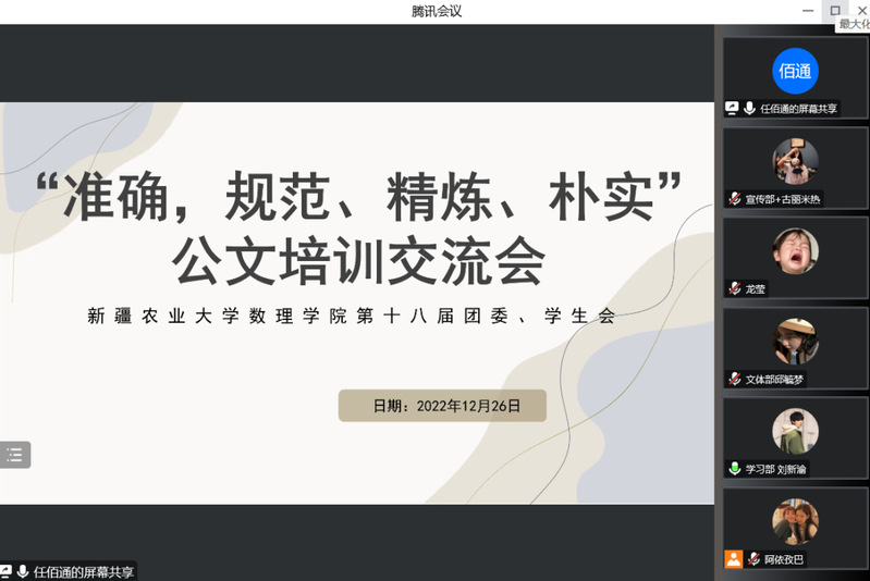为提高百合漫画 团委、学生会全体成员的综合素质,提高办公效率,使学院工作朝着精细化方向发展。12月26日下午,百合漫画 在线上召开“准确,规范、精炼、朴实”公文培训交流会,邀请到百合漫画 第十七届团委、学生会主席团成员任佰通进行主讲,百合漫画 团委、学生会全体成员参加,学习部负责人刘新渝主持。