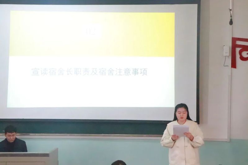 随后,权益部负责人张雪带领大家了解宿舍长职责及宿舍注意事项,希望宿舍长们发挥好桥梁纽带作用,提高责任意识,多关心舍友的学习、生活和心理状况,有问题及时向辅导员老师反映,帮助同学们度过难关。