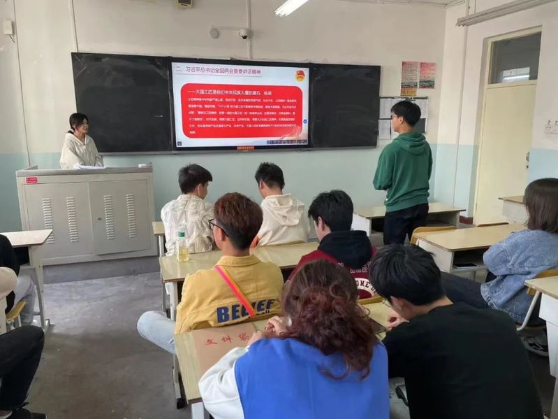 团支书黄紫橙在与同学们互动环节中,引导团员青年们积极发言,畅谈自己的理解和感受。同学们纷纷表示将深入学习和贯彻全国两会精神,与个人学习实际紧密结合,以脚踏实地的态度,齐心协力、奋发向前、把握机遇,在新时代新征程中交出卓越的答卷。