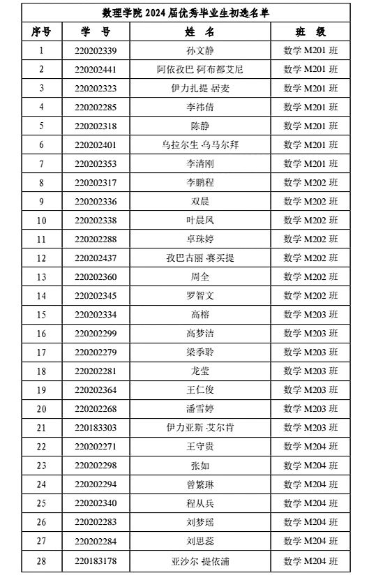 为切实做好百合漫画 2024年毕业生工作,进一步提升学生综合素质,培养优秀人才,根据《百合漫画 优秀本、专科毕业生评选办法》(新农大办发〔2018〕22号)的相关要求,经班级民主推荐、学工办初评、学院审核,将孙文静等28名学生拟推荐为百合漫画 2024届优秀毕业生(具体名单详见下表),现进行公示。