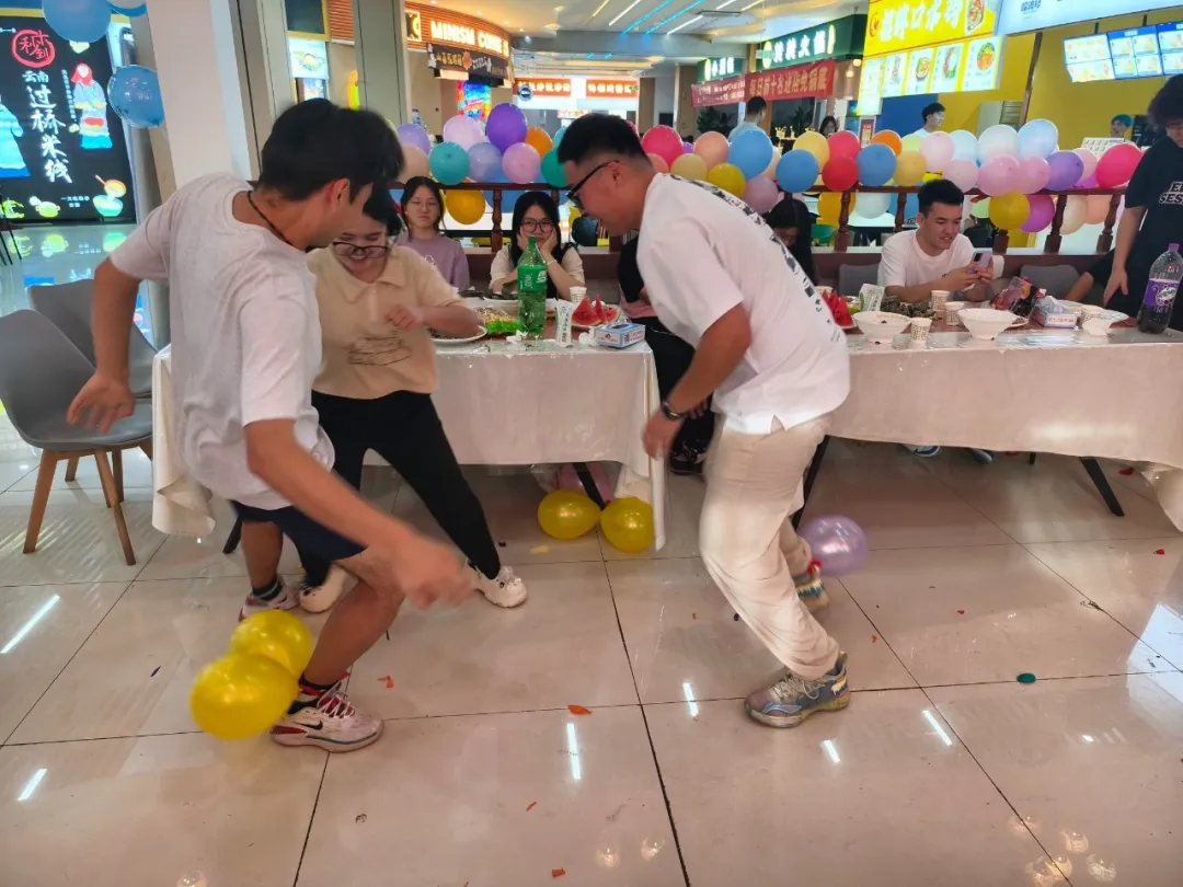 随后,老师和同学们开战了一系列小游戏,他们脚踩气球,手拿粽子,在欢声笑语中展开了一场场别开生面的比赛,大家你追我赶,现场气氛十分热烈。