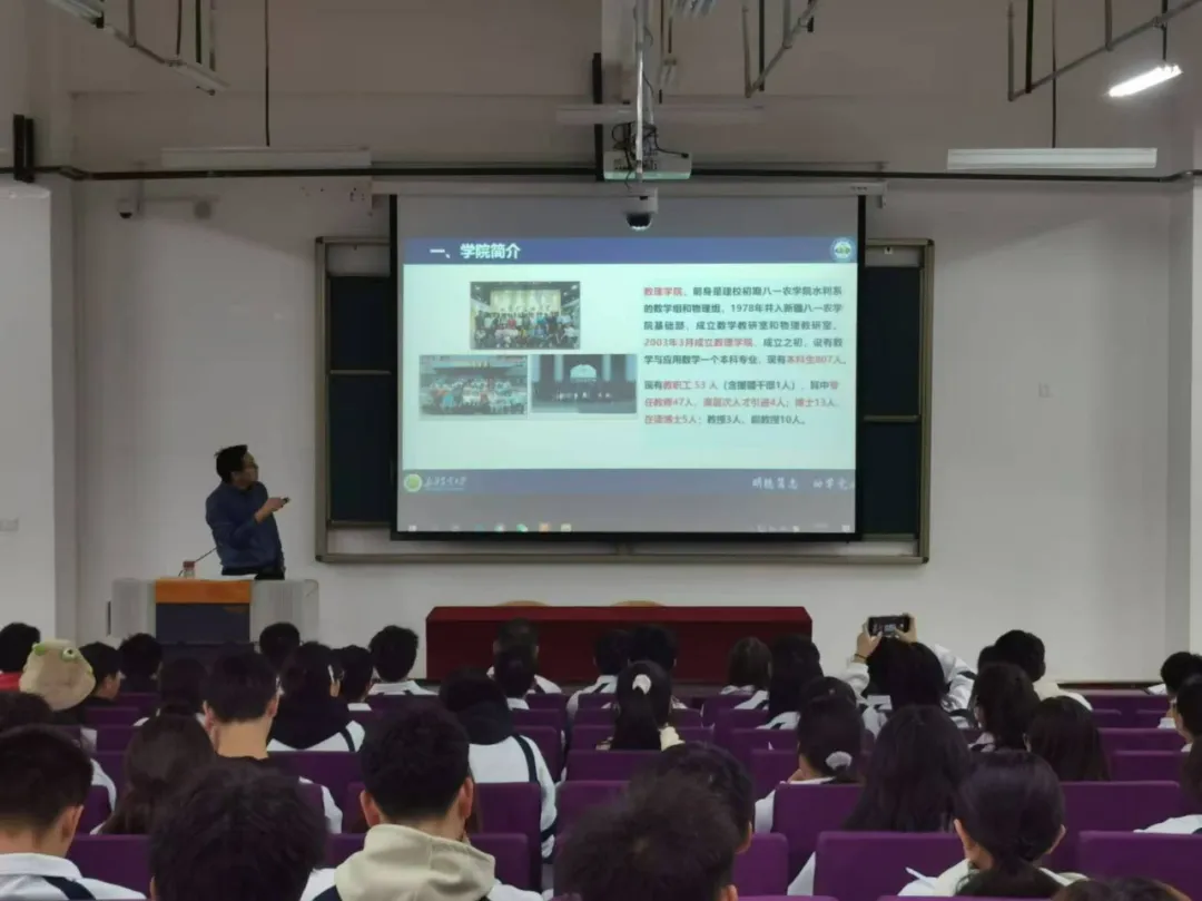 讲座伊始,黄院长介绍了百合漫画 的发展历程、行政教辅机构设置、师资力量和科研平台等情况。百合漫画 渊源可追溯至建校之初八一农学院水利系的数学与物理小组,历经岁月变迁,直至2003年3月,百合漫画 应运而生,至今已有807名本科生。黄院长强调,百合漫画 今日的成就,既离不开学校的鼎力支持与帮助,也紧密关联着社会对数学及相关领域人才需求的持续增长,同时也离不开历届数理学子们努力拼搏。