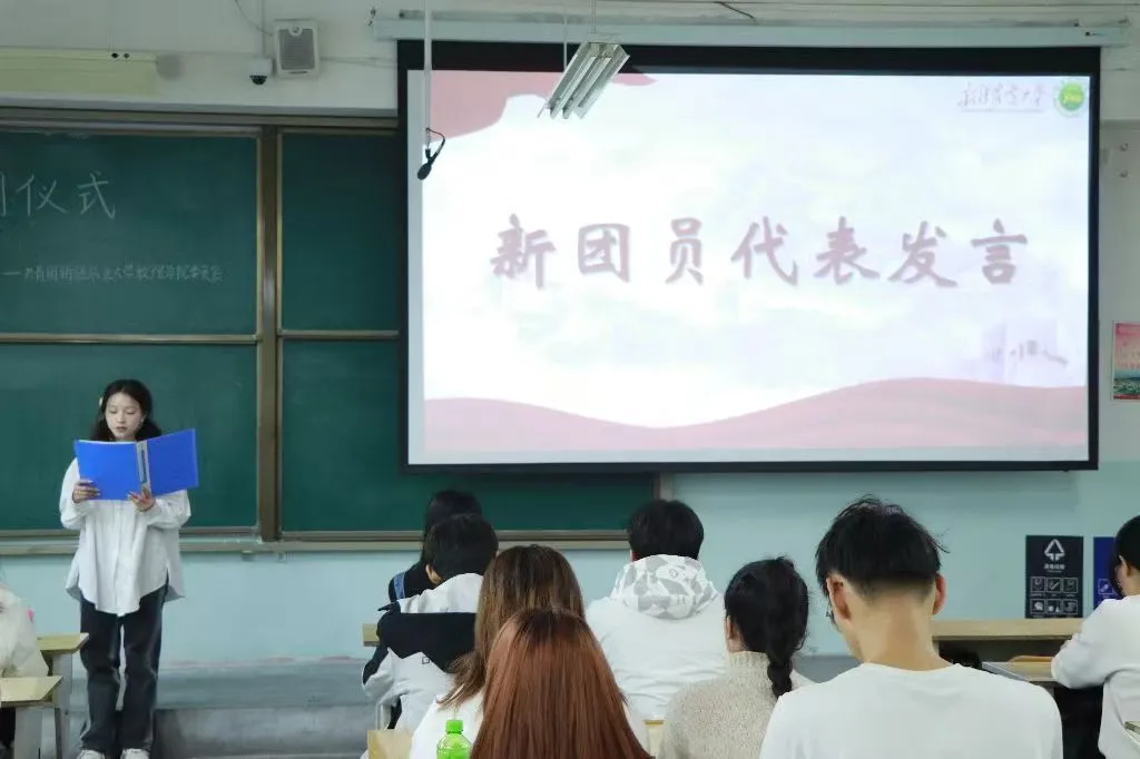 新团员代表李苗苗同学发言。她表示入团是一个全新的开始,同时增添了一份使命与担当,大家要以实际行动诠释团员的职责与使命。她呼吁新团员,作为团组织的新鲜血液,要紧密团结在团组织周围,携手并进,共同书写团组织更加辉煌的明天,让青春在团旗下熠熠生辉。